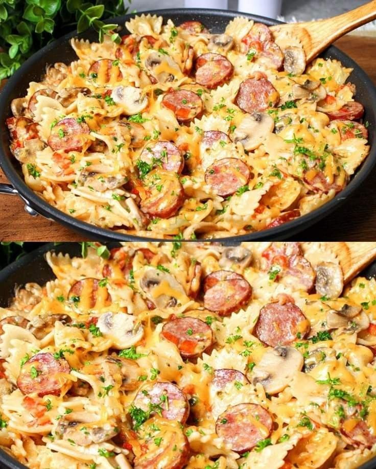 Pâtes savoureuses à la saucisse et à la crème de champignons